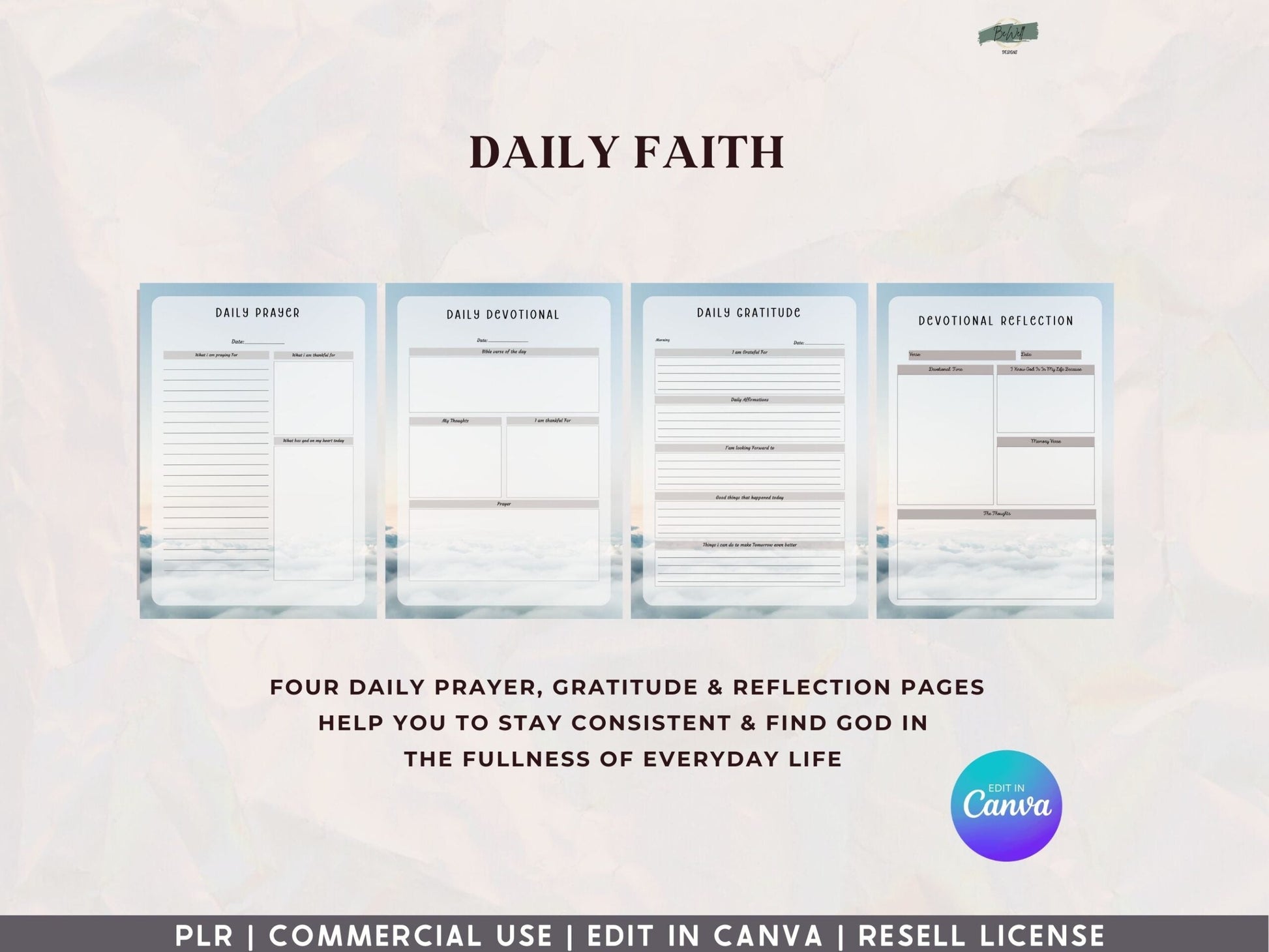 This journal not only includes great content but is also aesthetically designed. It’s a complete package for entrepreneurs looking for a beautifully designed digital template, without spending the hours of design work it takes to create a perfect journal. All you need to do is customise and brand it to align with your unique business identity. Add your logo, adjust the colors, and personalize the content to create a cohesive and professional prayer resource for your customers