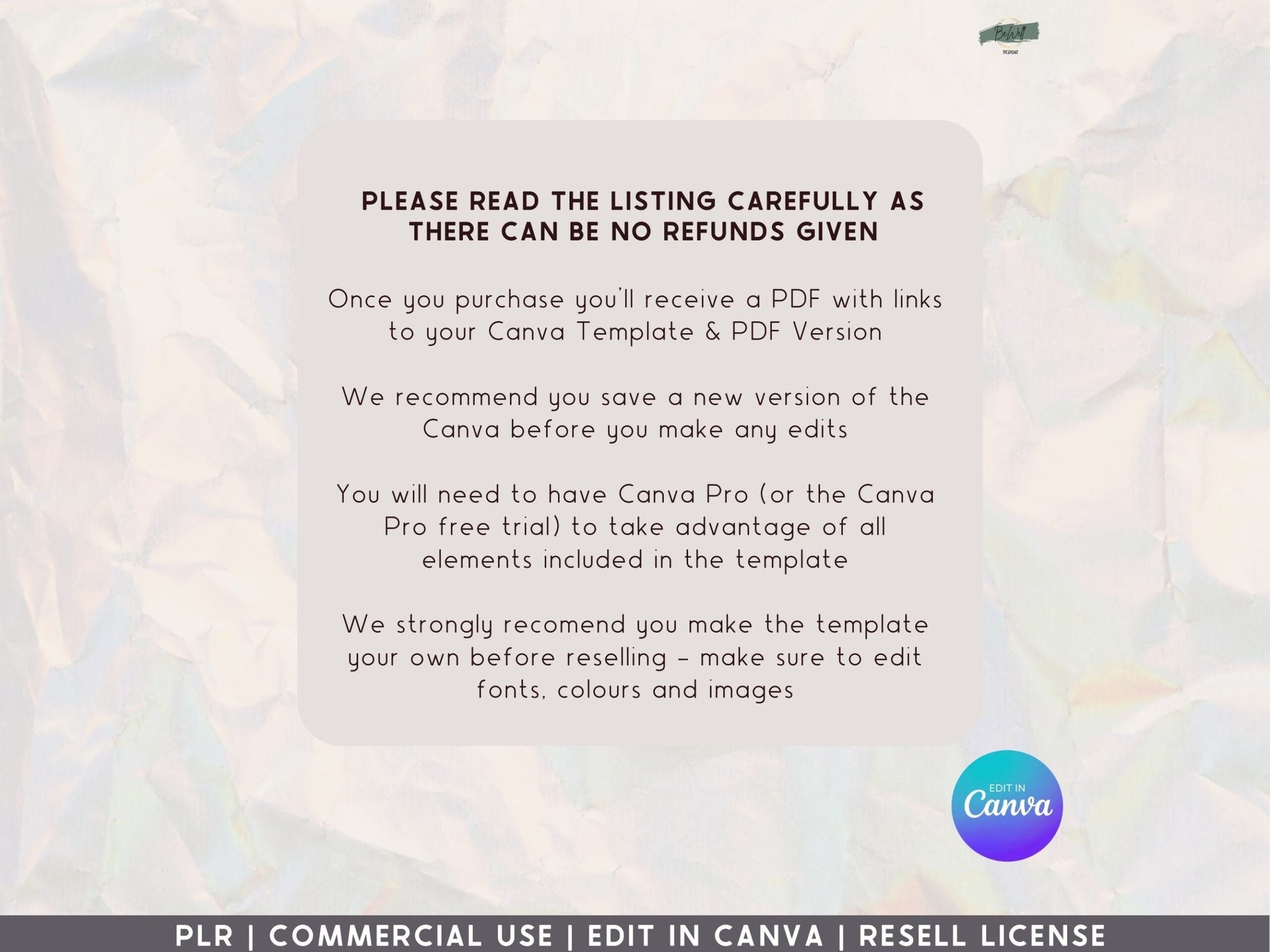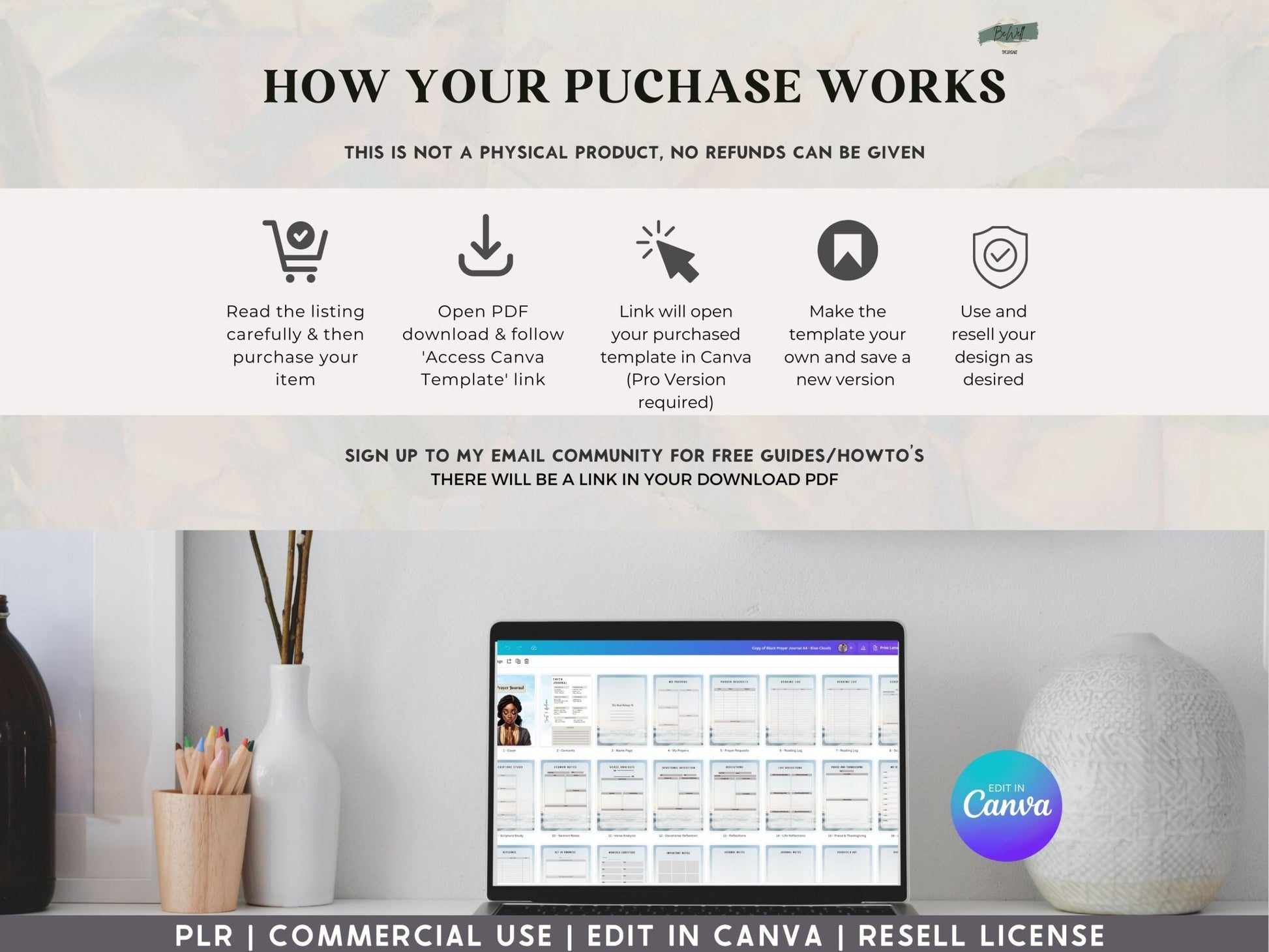 ❗ BeWell designs DO NOT offer refunds, returns, exchanges or cancellations due to the digital nature of these products. Please read the description in detail before you purchase